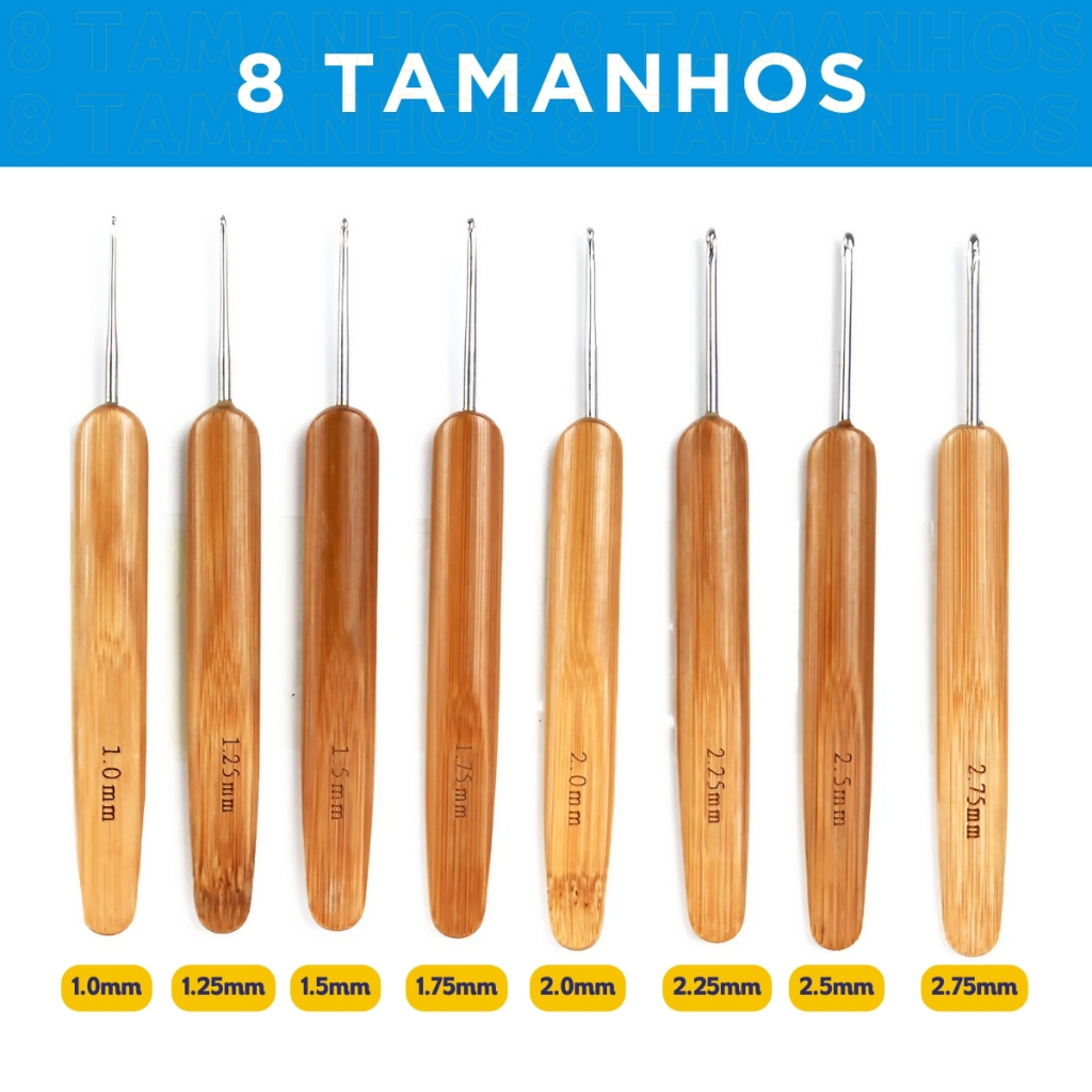 Kit Agulha Crochê Barbante 20 Peças em Bambu com Estojo Portátil Organizador Completo - NY