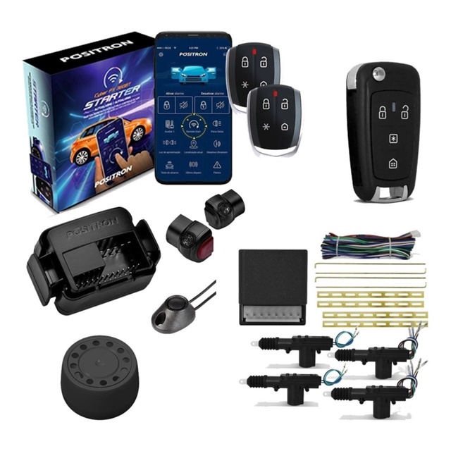 Kit Alarme Positron PX360BT Starter Universal + Trava Elétrica 4 Portas + Chave Canivete PX80