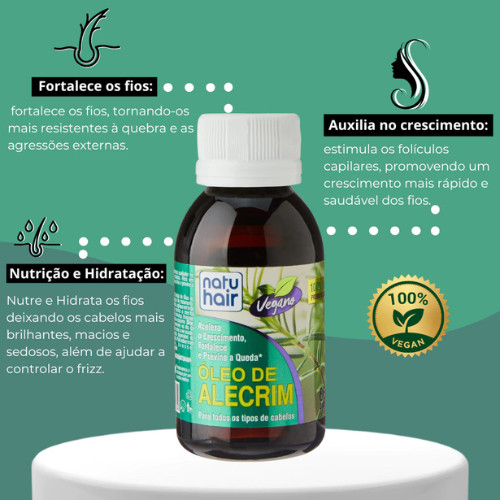 KIT ALECRIM NATUHAIR - Óleo 60ml + Tônico 115ml + Brinde Ampola de Alecrim 10 ml Tratamento Capilar