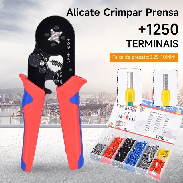 Kit Alicate Crimpar Prensa Box Com 1250 Terminal Ilhós 0,25 A 10mm
