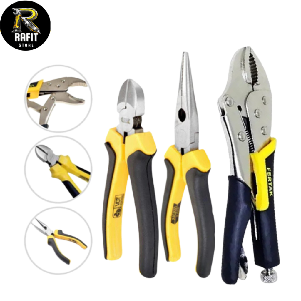 RAFIT STORE Escolha seu kit corretamente O Kit Jogo de 3 Alicates Fertak contém - 1(um) Alicate Universal 8" Pol - 1(um) Alicate de Bico Meia Cana 6" Pol - 1(um) Alicate de Corte Diagonal 6" Pol. O Kit Jogo de 4 Alicates Fertak contém - 1(um) Alicate Universal 8" Pol - 1(um) Alicate de Bico Meia Cana 6" Pol - 1(um) Alicate de Corte Diagonal 6" Pol. - 1 ( um) alicate de pressão de 6pol O Kit Jogo de Alicates da Fertak em Aço Carbono é indicado para trabalhos de montagem e reparação, tanto para o uso Hobbie ou uso Profissional em pequenas oficinas. Vantagens do do Kit Jogo de 3 Alicates Fertak - Alicates em Aço Carbono; - Acabamento Polido; - Aumento da durabilidade contra a corrosão; - Cabo Plástico Anatômico com dois componentes; - Maior Conforto ao Usuário. Sobre o Kit Jogo de 3 Alicates Fertak Vai completar sua caixa de ferramentas! O Kit possui 3 Alicates de diferentes utilidades, cada um com suas funções diferenciadas para lhe auxiliar nas tarefas cotidianas, podendo ser útil em pequenas oficinas e até mesmo dentro de casa em várias utilidades diárias. Alicates de Excelente Qualidade e Acabamentos, com Cabos de Borracha Anatômicos, proporcionando maior conforto ao usuário. - Produto Trabalhado em Aço Carbono; - Cabo antideslizante emborrachado com abas protetoras para maior segurança e conforto. Detalhes de cada Modelo de Alicate do Kit Jogo de 3 Alicates Fertak - Alicate Universal 8" (200mm) O Alicate Universal 8 polegadas é a peça fundamental do kit, pois une as funções do alicate de bico e de pressão, podendo ser utilizado tanto para pressionar quanto para cortar objetos. - Alicate de Bico Meio Cana-Reto 6" (150mm) O Alicate de Bico 6 pol pode ser utilizado em serviços mecânicos ou oficinas de reparos de eletrônica é uma peça versátil, sendo ideal para acessar locais de difícil acesso. - Alicate de Corte 6" (150mm) O kit ainda possui o Alicate de Corte Diagonal 6 Pol, perfeito para cortar arames e fios com muito mais precisão, com seu cabo Anatômico , proporcionando maior conforto ao usuário. - Alicate Universal 8" Pol - Comprimento: 200mm Largura: 64mm Altura: 20mm Peso: 388 gramas - Alicate de Corte Diagonal 6" Pol - Comprimento: 160mm Largura: 64mm Altura: 17mm Peso: 208 gramas - Alicate de Bico Meia CanaReto 6" Pol - Comprimento: 160mm Largura: 65mm Altura: 18mm Peso: 180 gramas - Alicate Pressão Boca Curva 10" Pol - Comprimento: 220mm Largura: 70mm Altura: 30mm Peso: 500 gramas