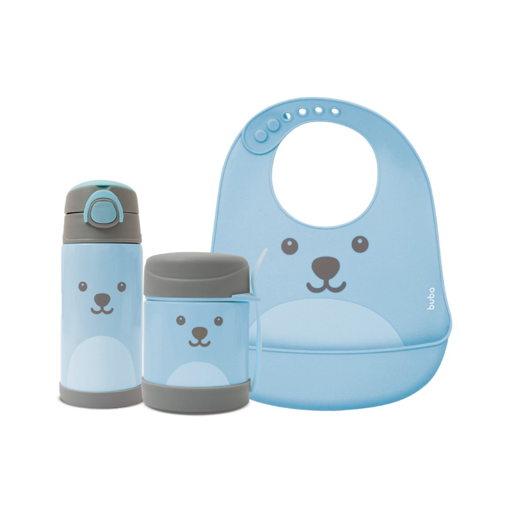 Kit Alimentação Bebê – Pote Térmico, Garrafa Térmica e Babador de Silicone Gumy Buba