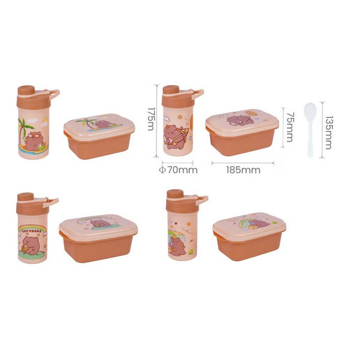 Kit Alimentação Infantil Capivara Marmita Lancheira Garrafa Marrom-claro