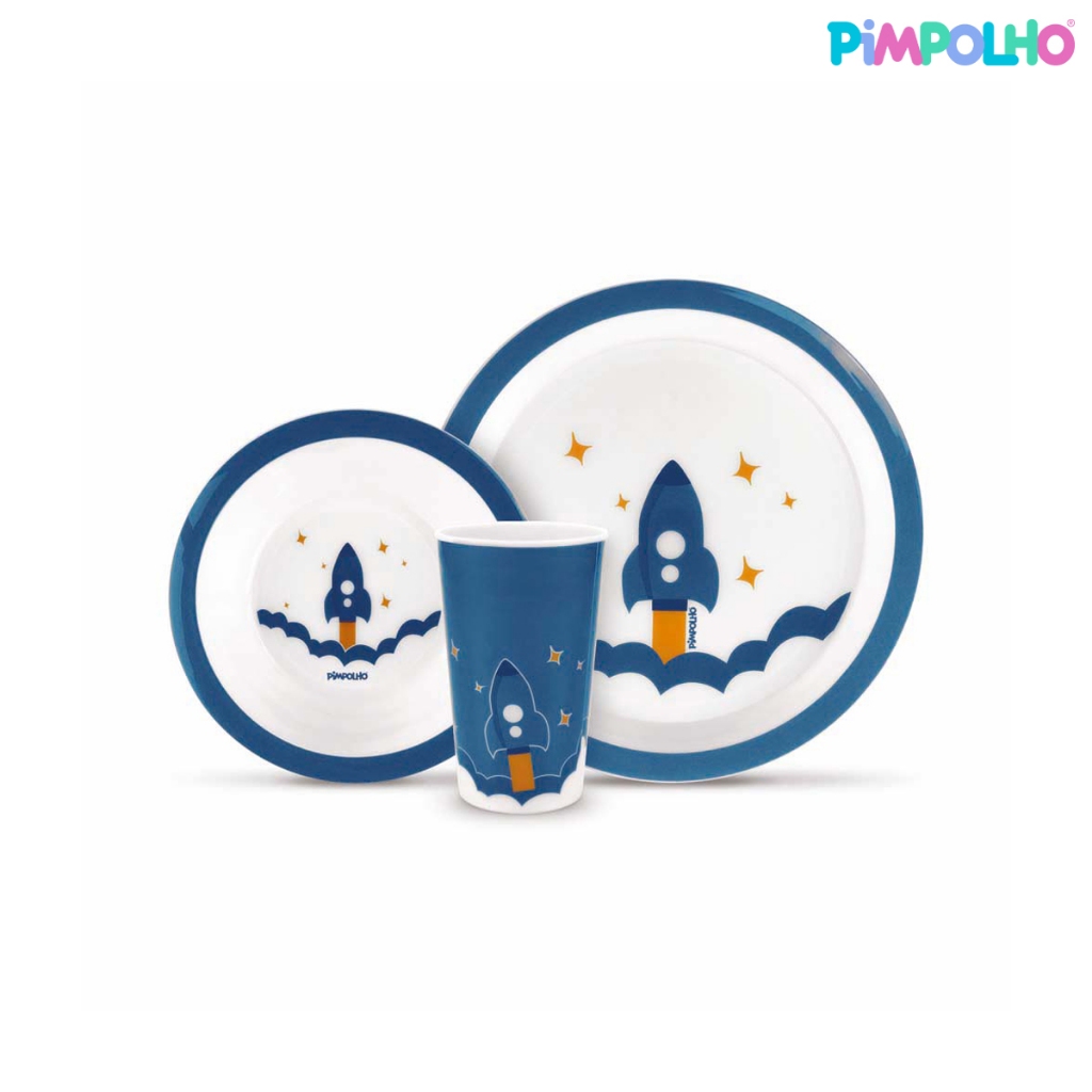 Kit Alimentação Infantil Pimpolho 3 Peças Prato Tigela Copo Livre de BPA