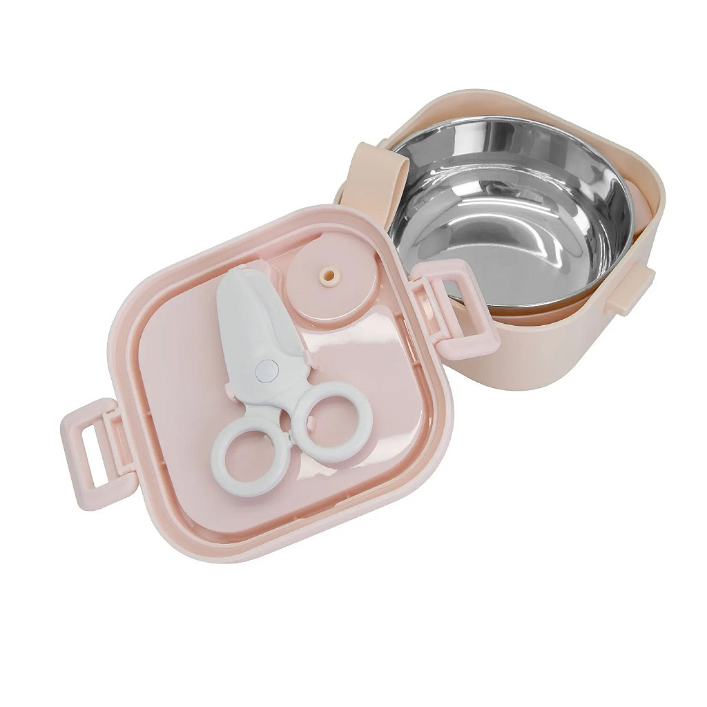 Kit Alimentação Passeio Tigela 2 Estágios Colher e Tesoura Rosa - Marcus & Marcus