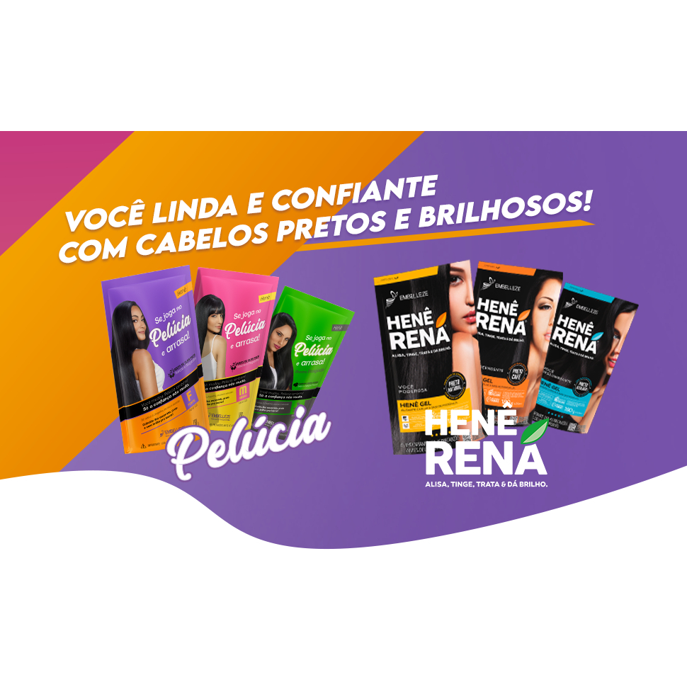 Alisante Henê Rená Preto Azulado Pouch 180g Embelleze - 12 Unidades O Henê Rená Preto Azulado foi feito para quem ama cabelo liso e preto e sonha com um efeito duradouro e natural. Ele transforma os seus cabelos progressivamente, garantindo maciez e um balanço de dar inveja. A sua fórmula, além do poder de alisamento e da força do jaborandi, traz a hidratação do karité, para dar muito mais brilho aos fios. Sua nova e exclusiva fragrância vai deixar seu liso mais perfumado e você ainda mais confiante. E então, preparada para os elogios? Como Aplicar: 1 - Aplique o Henê gel Rená, mecha por mecha. 2 - Puxe com pente fino, da raiz às pontas, esticando bem os fios. Cubra com uma touca plástica por 60 minutos (o efeito será o mesmo se o tempo for maior). 3 - Enxágue bem os cabelos e lave-os com shampoo e condicione. 4 - Se você quer um efeito bem liso, pode fazer uma escova. E se você quer um penteado ondulado, é só deixar os cabelos secarem em bobs. 5 - Aconselhamos 2 aplicações por semana até atingir o resultado desejado. Retoque: Ao fim do alisamento, que varia de acordo com o tipo de cabelo e o resultado desejado, faça apenas o retoque na raiz de 15 em 15 dias, evitando levar o Henê Rená para as pontas. Resultado: Cabelão liso escorrido, preto e com brilho pra lacrar!