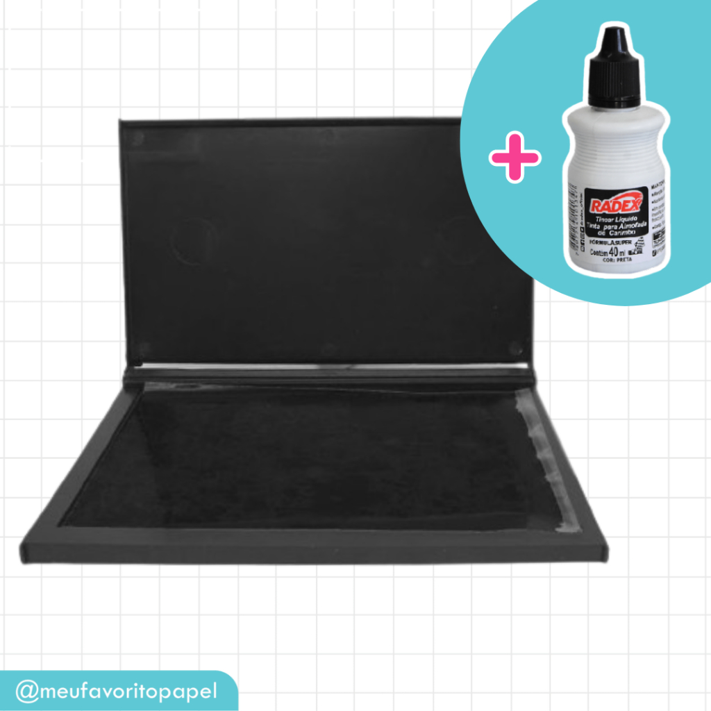 Kit Almofada Carimbo Grande N3 + Tinta para Carimbo - Carimbos de Madeira Carimbeira
