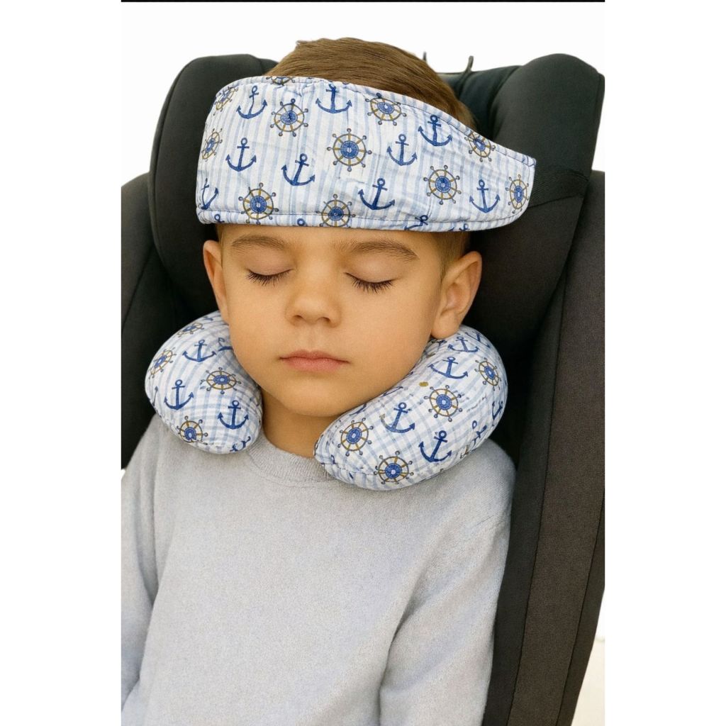Kit Almofada de Pescoço +Faixa Apoio Suporte Cabeça Criança Cadeirinha Carro Para Passeios e Viagens