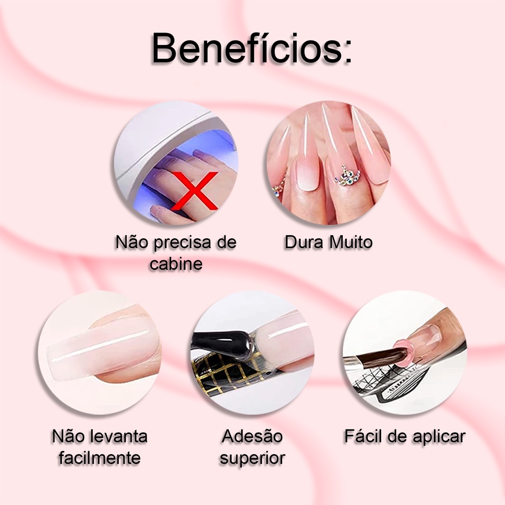 Kit Alongamento de Unhas Manicure Monomer Acrylic Liquid + Pó Acrílico + 5 Pincéis + Copo Dappen