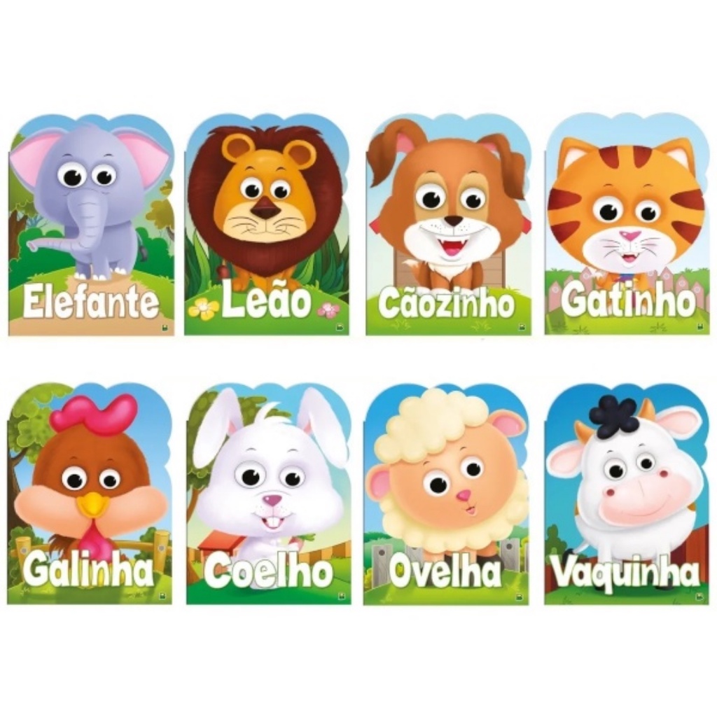 Kit Amiguinhos Recortados + Olha quem sou | 16 livros com Histórias Infantis | Fazendinha Animais Bichinhos Crianças