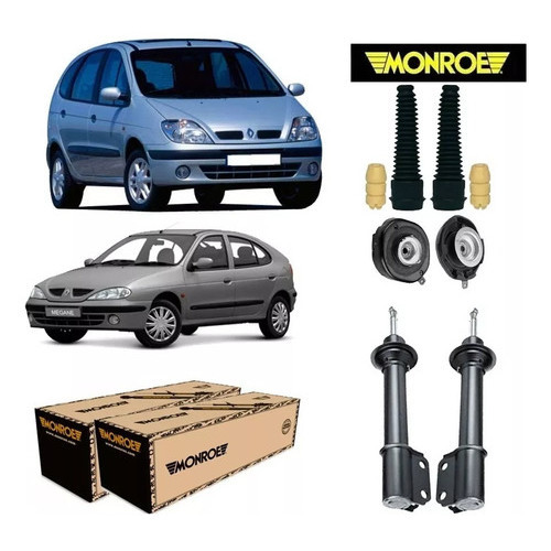 Este anúncio contem os seguintes produtos: O Kit Contem: 01 (um) Amortecedor Dianteiro Esquerdo Original Monroe; 01 (um) Amortecedor Dianteiro Direito Original Monroe; 02 (dois) Suporte/Coxim Dianteiro; 02 (dois) Batente Dianteiro; 02 (dois) Coifa Dianteira; 02 (dois) Rolamento Dianteiro; Garantia: 02 anos de garantia para amortecedores e 3 meses para demais itens; Aplicação dos Veículos: Veículo: Megane; Motor: 1.6 8v, 1.6 16v, 2.0 8v; Posição: Dianteiro; Ano Inicial: 1998, 1999, 2000, 2001, 2002, 2003, 2004, 2005; Veículo: Megane Sedan; Motor: 2.0 8v; Posição: Dianteiro; Ano Inicial: 1998, 1999, 2000, 2001; Veículo: Scenic; Motor: 1.6 16v, 2.0 8v, 2.0 16v; Posição: Dianteiro; Ano Inicial: 1999, 2000, 2001, 2002, 2003, 2004, 2005; Dúvidas frequentes: O Produto é novo? Sim, nós trabalhamos apenas com produtos novos e originais com garantia e nota fiscal. O Produto é original? Sim, nós só trabalhamos com distribuidores representados pelos fabricante, ou compramos diretamente dos fabricantes, gerando confiança da originalidade do produto. Tem garantia? Sim, todos nossos produtos têm 3 Meses (90 dias) de garantia contra defeitos de fabricação, exceto os amortecedores que possuem 2 anos de garantia total. O produto é igual ao da foto? Sim. Todas as fotos são fiéis ao que você irá receber, e para facilitar a sua compra ilustramos também o veículo em que se aplica o produto. Em quanto tempo recebo minha compra? É muito simples, basta colocar seu CEP no calculador de frete do anuncio. Como faço para saber se o produto deste anúncio se aplica ao meu veículo? Você pode conferir se o produto se aplica no seu carro através da descrição do anúncio no item: “Aplicação dos Veículos”. Caso tenha alguma dúvida, entre em contato com nossa equipe e os profissionais qualificados irão te orientar em qualquer dúvida, estamos sempre a disposição. Tem alguma dúvida sobre o produto ou sobre a compra? Deixe sua pergunta abaixo, que responderemos prontamente. O que é: O amortecedor é uma peça muito importante para o carro e que tem, inclusive, relação com segurança do veículo, já que ela é o principal item do sistema de suspensão — um dos componentes de maior importância nos automóveis. Como citamos, a suspensão é um dos componentes mais importantes do carro. Uma de suas partes fundamentais é o amortecedor. Peça que é responsável por amortecer os impactos entre o carro e o piso e que, também, é fundamental para a segurança, frenagem e estabilidade do veículo, principalmente em curvas. Contar com um amortecedor confiável é fundamental, sendo que essa peça é conhecida como um dos itens do “Triângulo da Segurança”, com o pneu e freio — componentes que de maneira imprescindível precisam estar em perfeito estado para garantir a segurança do veículo. Sobre os Fabricantes: Seja bem-vindo à AutoProParts, sua fonte confiável de peças automotivas de alta qualidade! Somos uma empresa apaixonada por carros e comprometida em fornecer soluções duráveis e eficientes para todas as suas necessidades de reposição e manutenção veicular. Com uma ampla variedade de peças e acessórios disponíveis, garantimos a excelência em qualidade, desempenho e segurança. Nossa equipe especializada está pronta para ajudá-lo a encontrar exatamente o que você precisa, seja para reparos ou aprimoramentos. Confie na AutoProParts para garantir o máximo desempenho e confiabilidade ao seu veículo. Fundado em 1916 na cidade de Monroe, estado de Michigan, pelo mecânico e empresário August F. Meyer, o negócio que acabou por se tornar a Monroe Auto Equipment Company inicialmente fabricava bombas de pneus para os proprietários dos primeiros automóveis. Logo Meyer acrescentou um sócio, um revendedor local de carros Dodge, Charles S. McIntyre, cujo conhecimento da indústria ajudou a incrementar a demanda pelas bombas da empresa, que eram autolubrificantes e de cano único. Em 1926, Meyer e McIntyre já haviam dirigido sua atenção para uma oportunidade maior: a demanda dos motoristas por maior conforto e controle. Mais tarde, nesse mesmo ano, Meyer e McIntyre introduziram o primeiro "Eliminador de Choques" da Monroe, que logo substituiu as toscas molas dos automóveis de passageiros da época. Nove décadas e milhões de clientes depois, a marca Monroe se tornou uma norma globalmente reconhecida de inovação e excelência de produtos dentro da categoria de ride control.