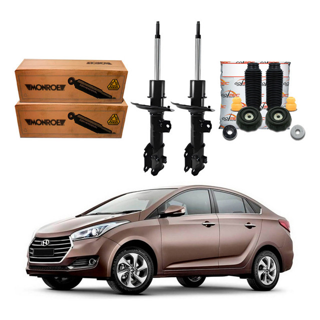 Este anúncio contém os seguintes produtos: Par de amortecedores dianteiros, lado esquerdo e direito; Par de kit de amortecedor dianteiro composto por batente, coifa, coxim e rolamento. Fabricante dos amortecedores dianteiros: Monroe Fabricante dos kits dianteiros: Go Mec Produtos novos, com 2 anos de garantia para os amortecedores e 3 meses para os demais itens. Este produto se aplica a esses veículos: Anos de fabricação: 2012, 2013, 2014, 2015; Observações: Não se aplica no modelo HB20X. Anos de fabricação: 2016, 2017, 2018, 2019; Observações: Não se aplica no modelo HB20X. Anos de fabricação: 2013, 2014, 2015; Observações: Não se aplica no modelo HB20X. Anos de fabricação: 2016, 2017, 2018, 2019; Observações: Não se aplica no modelo HB20X. Anos de fabricação: 2016, 2017, 2018, 2019; Observações: Não se aplica no modelo HB20X. Somos a Go! Mec Auto Peças, estamos no ramo de autopeças para veículos nacionais e importados há duas décadas, nosso estoque conta com uma variedade de aproximadamente 45.000 itens. Nossa equipe de Pós-Vendas é altamente capacitada, resultando na excelência no atendimento e na busca constante pela satisfação dos clientes. Navegue pela loja virtual e fique à vontade!