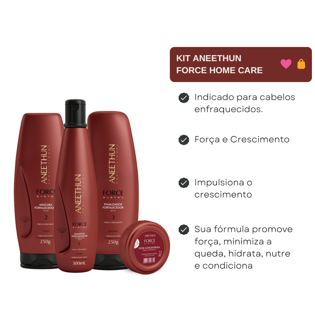 Kit Aneethun Tratamento Capilar Force System Força e Crescimento 4 Produtos + Brinde 01 Creme de Silicone 40ml