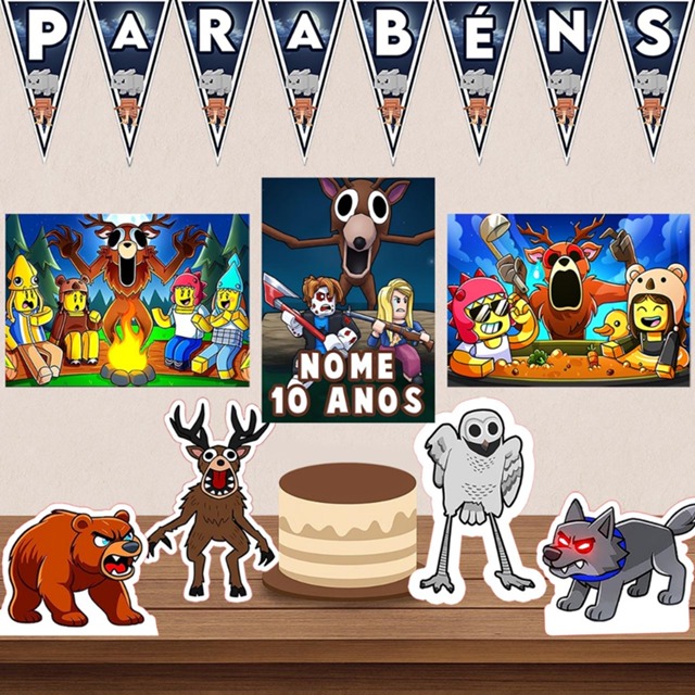 Kit aniversário 99 Noites na Floresta - Festa infantil em casa fácil de montar tema Roblox
