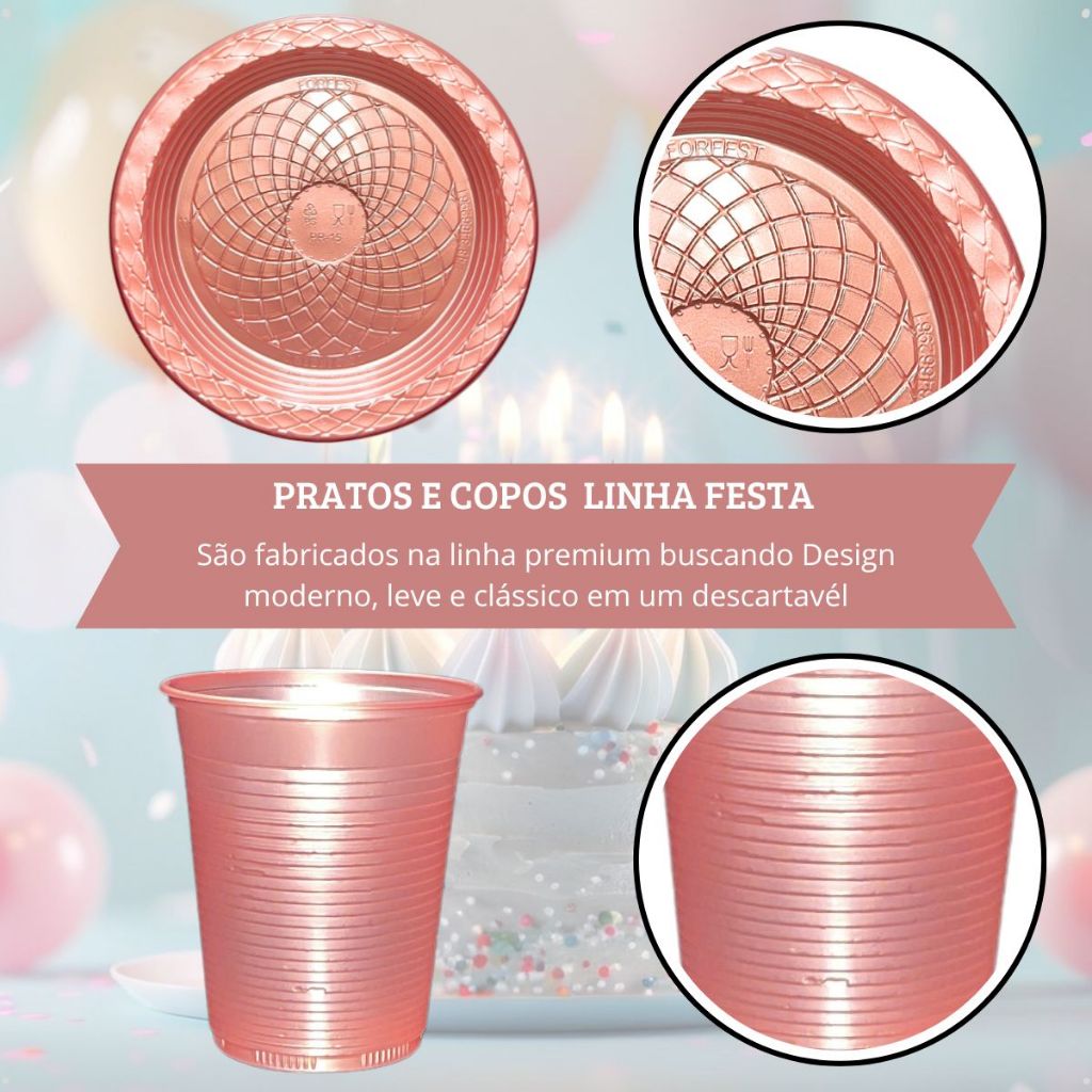 Kit Aniversário Festa Descartável 150 Unidades Pratos Garfos Copos Pratinho Redondo Perolado Perolizado Brilhoso Candy