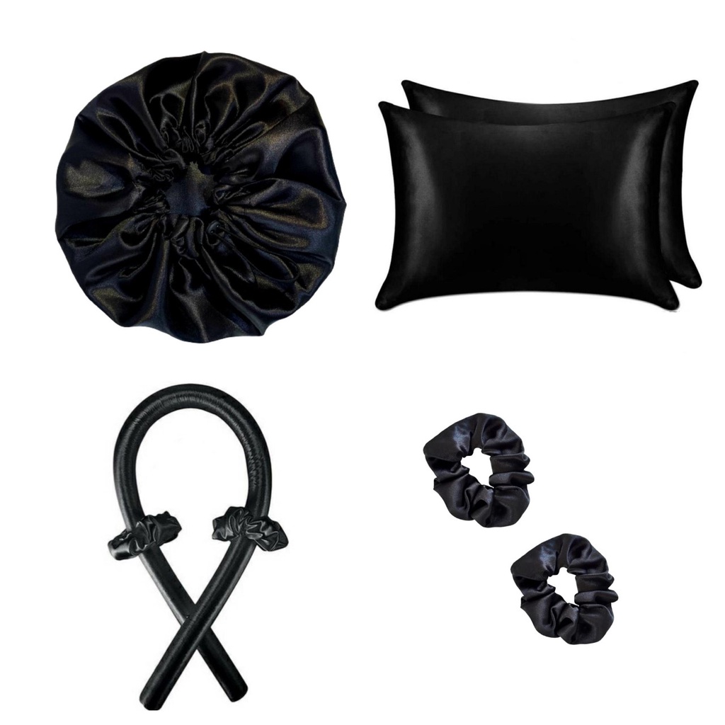 Kit Anti Frizz 2 Fronhas 1 Touca 1 kit Modelador de cachos 2 Scrunchioes