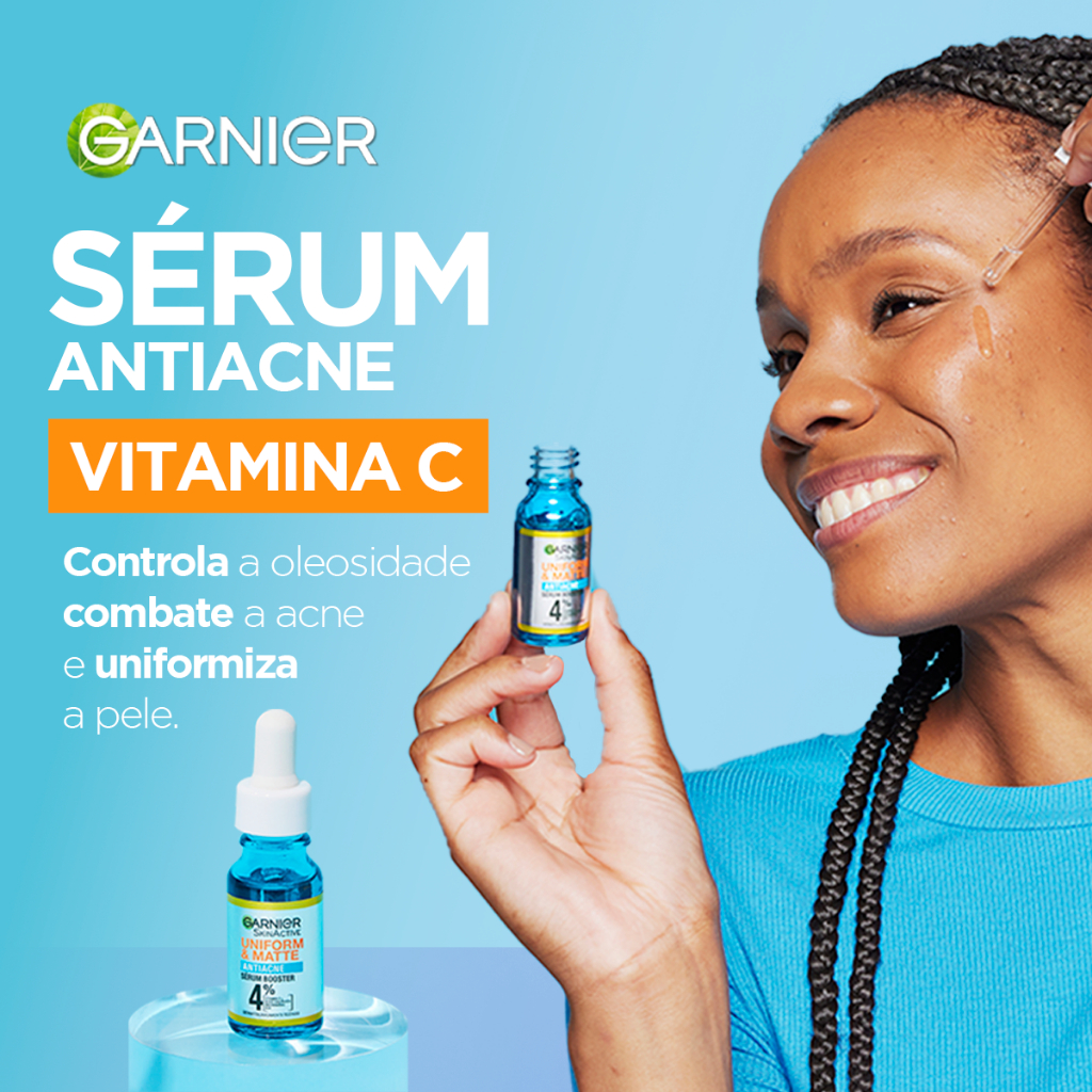Kit Rotina Antiacne Completa Garnier Uniform & Matte: Limpeza, Tratamento Intensivo e Hidratação! Este kit reúne o trio perfeito para combater a acne e conquistar uma pele impecável: o Limpador Facial 3 em 1 Antiacne, o Sérum Booster Antiacne e o Hidratante Facial Toque Seco Antiacne. Prepare-se para uma pele mais uniforme, hidratada, sem oleosidade e livre de imperfeições! 1. Limpeza Profunda e Multifuncional: Inicie sua rotina com o Limpador Facial 3 em 1 Antiacne. Com Ácido Salicílico e Vitamina C, ele limpa profundamente, esfolia levemente e trata a acne, removendo impurezas, combatendo cravos e espinhas, e reduzindo marcas. 2. Tratamento Intensivo com Sérum Booster: Potencialize os resultados com o Sérum Booster Antiacne. Sua alta concentração de 4% de ativos (Vitamina C, Ácido Salicílico, Niacinamida e AHA) combate a acne, reduz marcas e deixa a pele mais radiante. 3. Hidratação Leve e Toque Seco: Finalize com o Hidratante Facial Toque Seco Antiacne. Com Ácido Salicílico, Niacinamida e Vitamina C, ele hidrata sem pesar, controla a oleosidade por até 8 horas e auxilia na redução da acne e cravos, proporcionando um acabamento matte e aveludado. Juntos, o Limpador Facial 3 em 1, o Sérum Booster e o Hidratante Facial Toque Seco Antiacne oferecem: Limpeza profunda, esfoliação leve e tratamento antiacne: Remove impurezas, combate cravos e espinhas, reduz marcas e controla a oleosidade, tudo em um único passo. Tratamento intensivo para reduzir a acne e marcas: A alta concentração de ativos no sérum potencializa os resultados, promovendo uma pele mais uniforme e saudável. Hidratação leve e toque seco: Hidrata a pele sem pesar, proporcionando um acabamento matte e aveludado por até 8 horas. Ação antiacne eficaz e completa: A combinação de Ácido Salicílico, Niacinamida e Vitamina C presente nos três produtos atua em sinergia para combater a acne, cravos e marcas. Controle da oleosidade: Controla o brilho excessivo, deixando a pele com aspecto sequinho e saudável ao longo do dia. Resultados rápidos e comprovados: Redução da oleosidade, acne e marcas em poucas semanas de uso. Este kit é ideal para você que busca: Uma rotina completa e eficaz para combater a acne. Reduzir e prevenir o aparecimento de espinhas, cravos e marcas. Controlar a oleosidade e o brilho excessivo. Uma hidratação leve e eficaz, sem pesar na pele. Experimente o Kit Rotina Antiacne Completa Garnier Uniform & Matte e conquiste a pele impecável, livre de acne e com toque seco que você sempre quis!