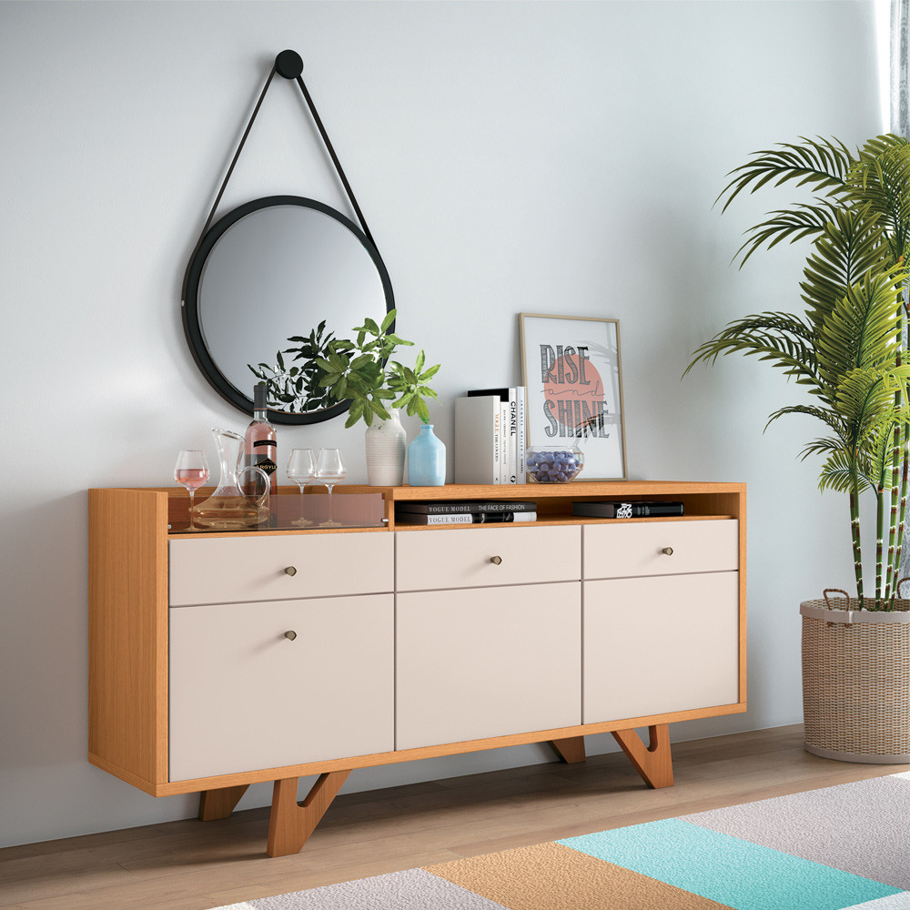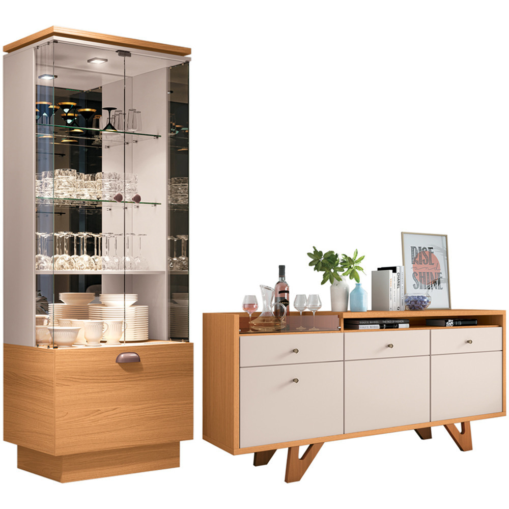 Kit Aparador Sala de Jantar Valentim com Cristaleira Dominic B01 Cinamomo Off White - Lyam Decor