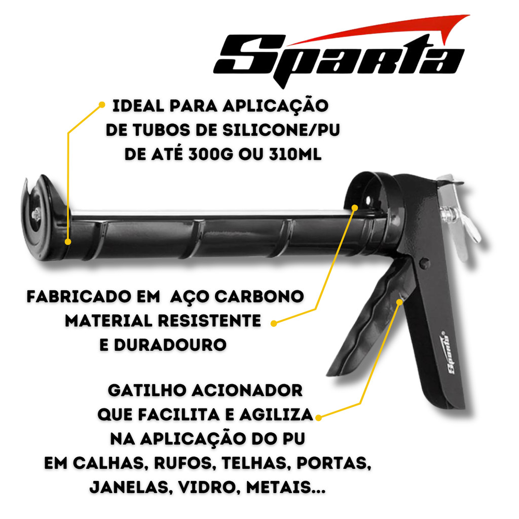 Cola PU40 Bisnaga Preto 360g Com Aplicador Sparta1 Aplicador de silicone da marca SpartaTubo de PU40 da marca Qualitex 360g ( Escolha a Quantidade) PU 40 - Qualitex - Adesivo flexível, à base de poliuretano modificado com silanos. Utilizado para: As mais diversas colagens e acabamentos da construção civil. Adere em diferentes superfícies - vidro, concreto, madeira, metal, fibra, cerâmica, alguns tipos de plásticos, borrachas, etc. De consistência pastosa e com propriedades de não escorrimento, cura em contato com a umidade ambiente, formando um elastômero resistente e flexível. Pode ser pintato e lavado, e não forma fungos. Mode de Usar - Preparação da superfície: A superfície deve estar limpa, seca e livre de partículas soltas ou sujidades que podem servir como antiaderentes. Se tiver pintira ou revestimento, raspar toda a superfície solta ou francamente fixada. Não é necessário o uso de primer. Depois de limpar a superfície, colocar a área para fins de acamabento. Aplicação: O produto já vem pronto para uso. Após colocar o cartucho preparado na pistola de aplicação que vem junto ao kit, pressionar o gatilho em operação contínua e fimemente de modo a preencher totalmente o vão, exercendo sempre pressão moderada para garantir o contato total do selante com bordas, evitando assim, a formação de bolhas de ar e garantindo uma adesão eficiente. Retirar o excesso de selante com o auxílio de uma espátula metálica. Retirar a proteção de fita cpre antes de iniciar a cura caso venha a aplica-lá. Envio em 24h, Produtos originais com garantia e Nota Fiscal. Qualquer dúvida utilize o Chat vai ser um prazer lhe atender, agradecemos a preferencia!!!