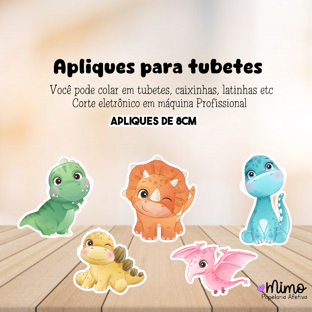 Kit Aplique 3D Dino Baby Menino 8cm para Tubete – Papel Fotográfico Festa Infantil (15, 30 ou 45 un)