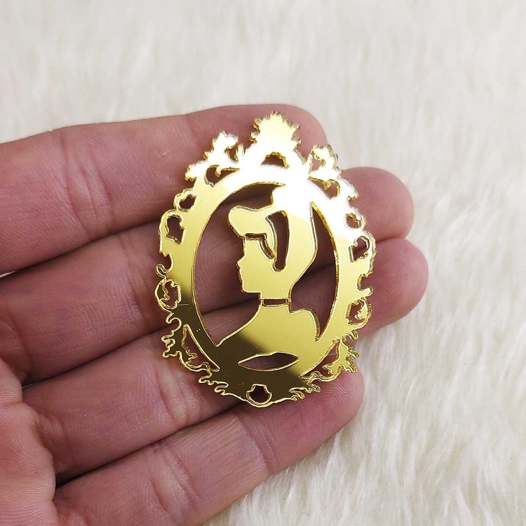Aplique Acrílico Espelhado Dourado Festa Cinderela. Informações sobre o produto: - KIT 10 peças. - Feito em acrílico 2mm espelhado na cor dourada; - Recorte a laser; - Dimensões: 5cm MAIOR LADO IMPORTANTE: - Informar ao vendedor qual ou quais modelos deseja . -VERIFIQUE DISPONIBILIDDE DE OUTROS TAMANHO E MODELOS . - Produto espelhado na frente, fundo cinza - Produto não acompanha nenhum tipo de fixação em sua parte traseira . Informações gerais: - Antes de realizar a compra, tire suas dúvidas; - Informe a data da sua festa antes de concluir a compra e verifique os prazos de produção.