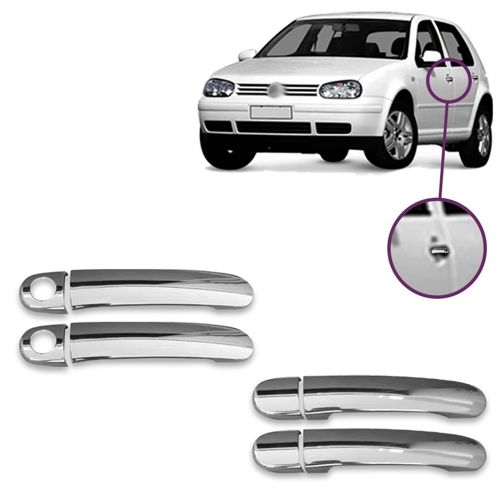Kit Aplique Cromado Maçaneta+ Par Retrovisor Golf 1999 2000 2001 2002 2003 2004 2005 2006 Kit Cromado 4 Portas