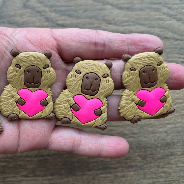 KIT APLIQUE EMBORRACHADO CAPIVARA CORAÇÃO PINK COM EXPESSURAS DO PELO, PACTE COM 10 PEÇAS