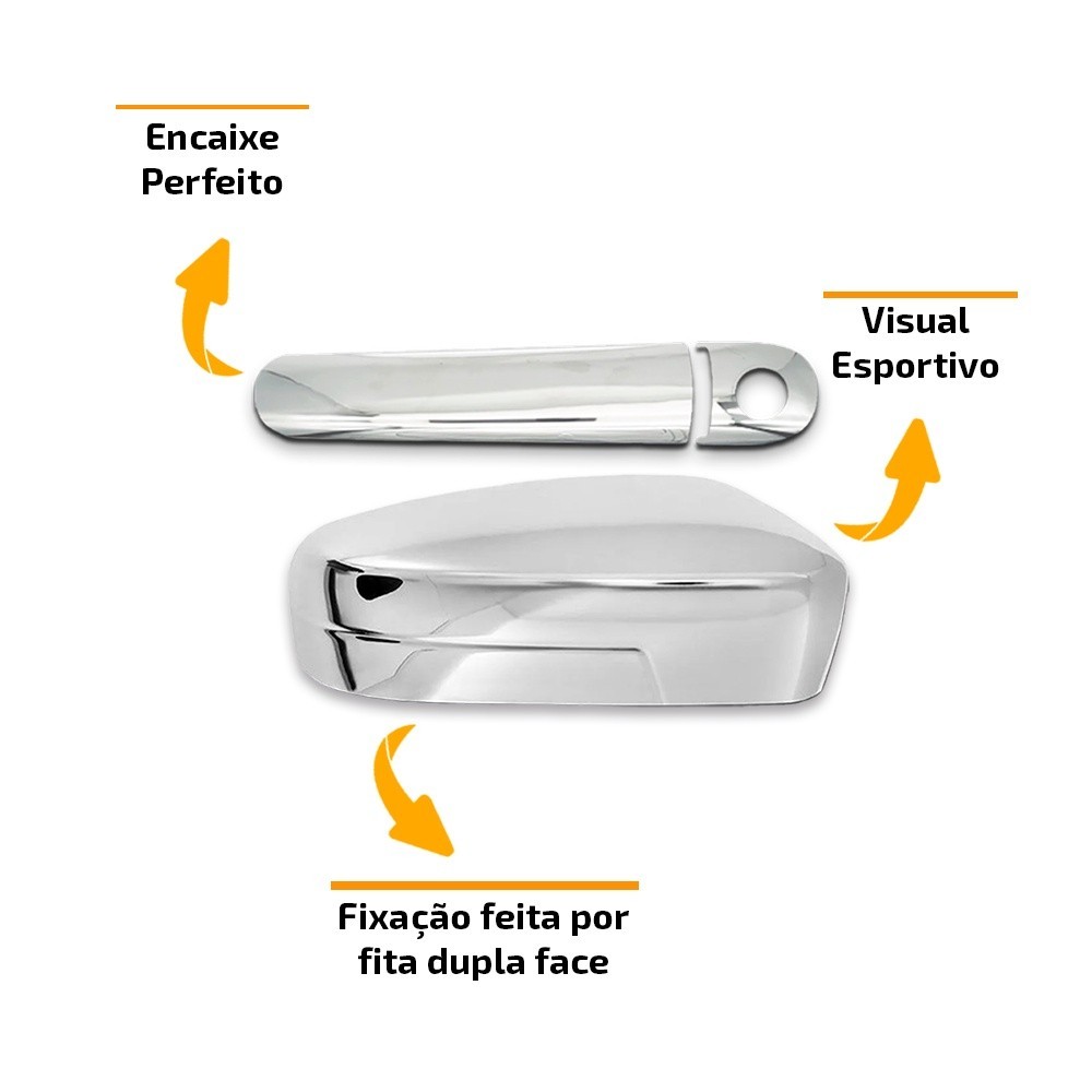 Kit Aplique Macaneta + Aplique para Capa Retrovisor Sem Pisca Gol Voyage Saveiro G5 2008 Á 2012 Jogo Cromado 2 Portas