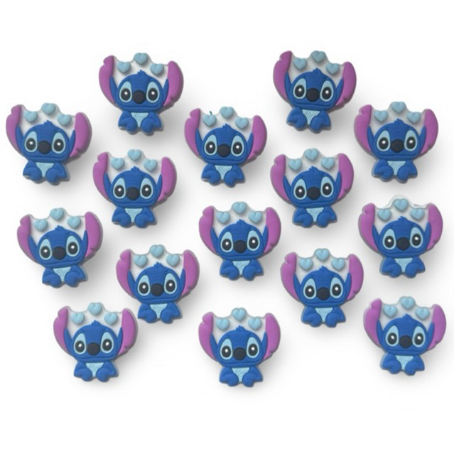 Kit Aplique Stitch Coração Emborrachado — 6/10/20/30 unid | p/ Laços, Chaveiros, Tiaras e Artesanato