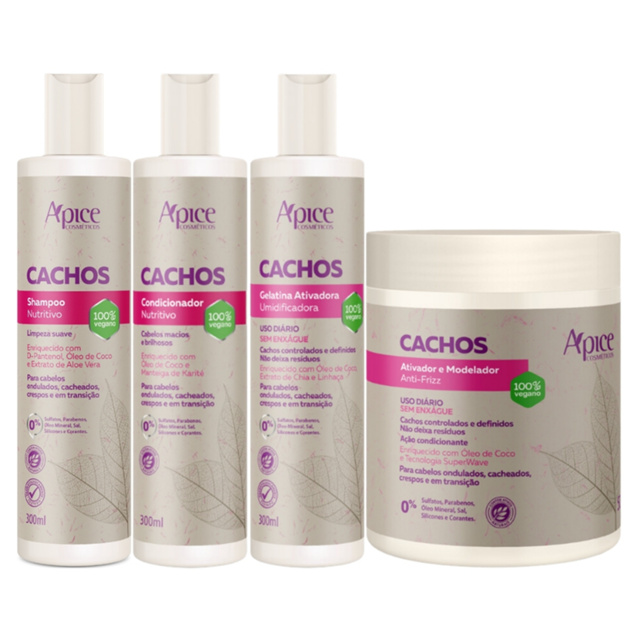 Kit Apse Cachos Shampoo + Condicionador + Gelatina + Ativador Cachos Profissional Completo