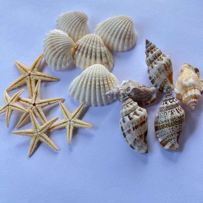 Kit aquário 5 estrelas do mar, 5 conchas mescladas 5 conchas branca, decoração aquário, aniversário fundo do mar, sereia