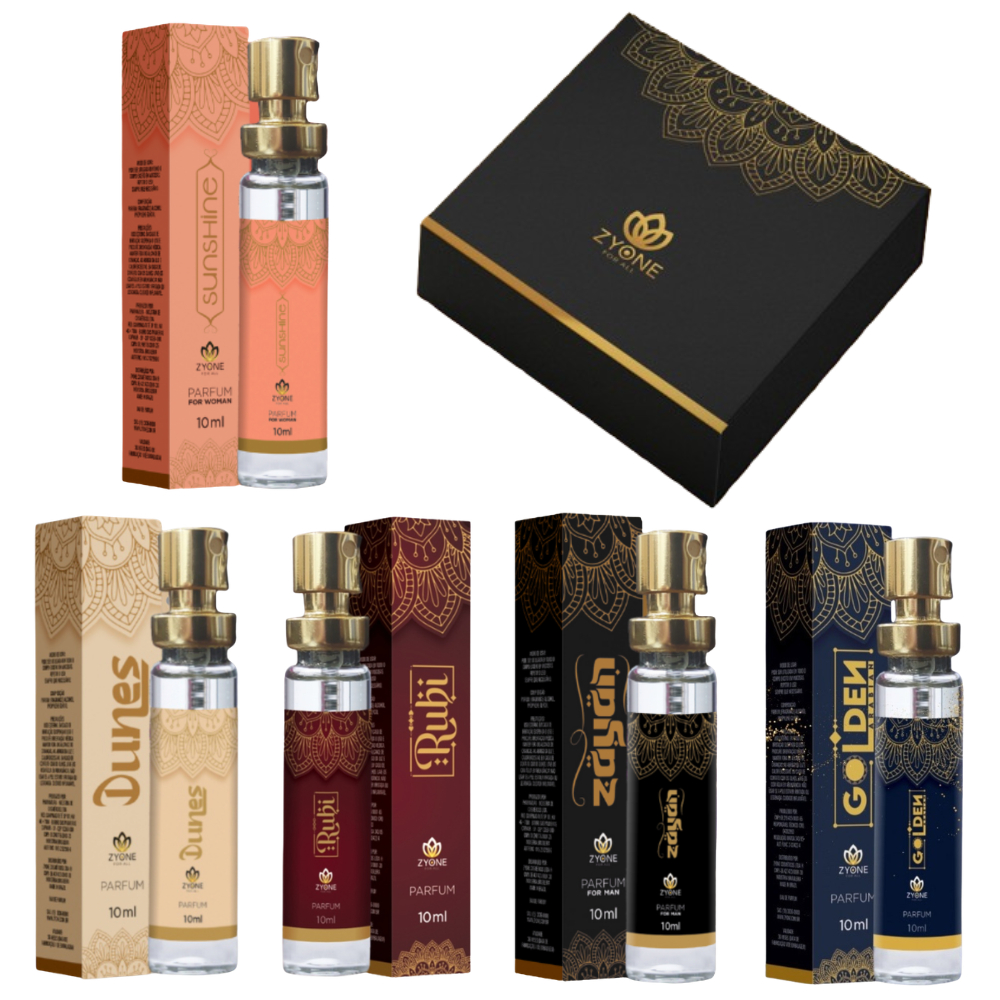 Kit Árabe Zyone Cosméticos 5 Perfumes 10ml com Caixa Presente Masculino Feminino e Unissex