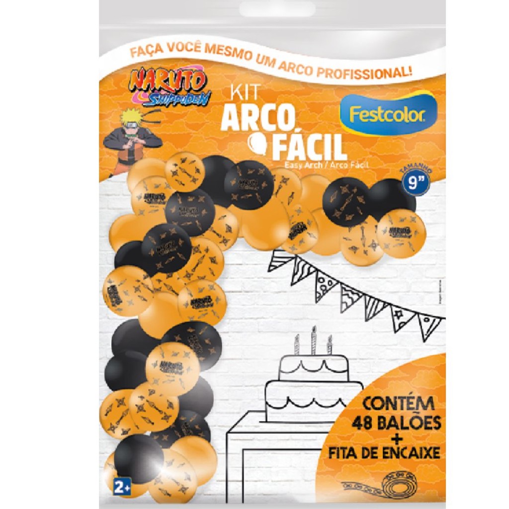 Kit 1 Arco Fácil Balão NARUTO n°9, com 50 unidades + 1 Fita arco, Produto Licenciado. Com o kit arco fácil fica mais facil, montar sua festa em casa!! Fabricante: Festcolor