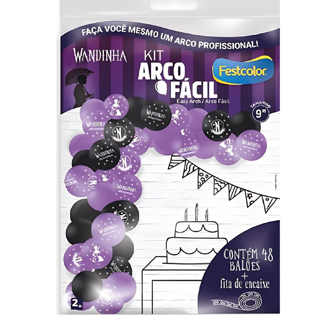 Kit 1 Arco Fácil Balão WANDINHA n°9, com 50 unidades + 1 Fita arco, Produto Licenciado. Com o kit arco fácil fica mais facil, montar sua festa em casa!! Fabricante: Festcolor