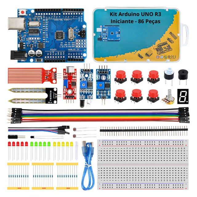 | Kit Arduino UNO R3 Iniciante - 86 Peças este produto | R$ 175,89 | — | 5.0/5 | — |