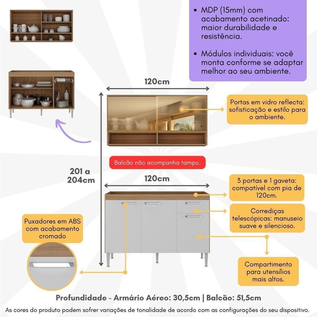 Kit Armário Cozinha Compacta 120cm com Balcão para Pia Paris Multimóveis MP2232