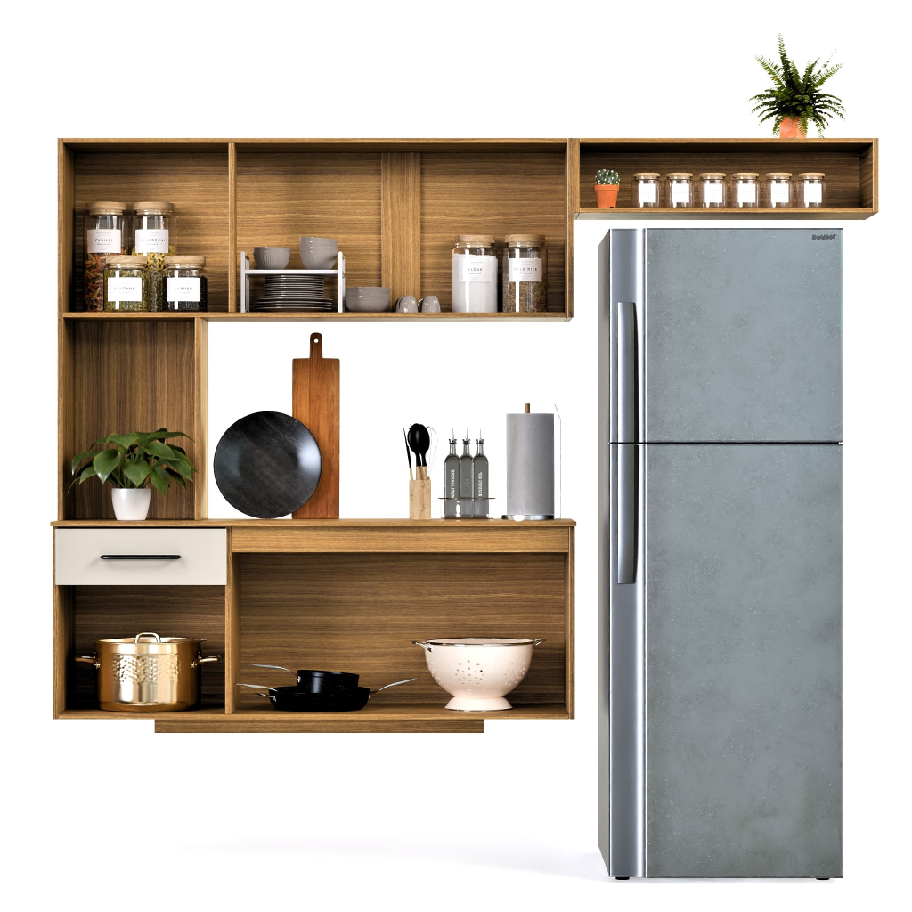 Apresente uma cozinha mais moderna, organizada e com visual sofisticado com o Armário de Cozinha Joana. Um conjunto compacto e super funcional, ideal para quem quer aproveitar melhor o espaço, com nicho para geladeira, compartimentos bem distribuídos e acabamento que valoriza o ambiente. PRINCIPAIS DIFERENCIAIS - Conjunto completo e inteligente: aéreo + balcão, com ótimo aproveitamento vertical. - Nicho para geladeira: encaixe planejado para deixar tudo alinhado e bonito. - Mais organização no dia a dia: 5 portas e 2 gavetas para separar utensílios, mantimentos e itens de limpeza. - Nichos abertos decorativos/funcionais: perfeito para potes, temperos, pratos e itens de uso rápido. - Design moderno: puxadores em tom escuro e opções com acabamento ripado (visual atual e elegante). MATERIAL E ACABAMENTO - Estrutura em MDF/MDP (excelente equilíbrio entre resistência e custo-benefício). - Acabamento de fácil limpeza para a rotina da cozinha. CORES DISPONÍVEIS - Damasco Off - Ripado Off - Ripado Grafite MEDIDAS (APROX.) - Largura: 163 cm - Altura: 135,5 cm - Profundidade: 35 cm ITENS INCLUSOS - 1 Armário de Cozinha Joana (conforme a cor escolhida) - Manual e kit de ferragens para montagem OBSERVAÇÕES IMPORTANTES - Produto enviado desmontado (montagem por conta do comprador). - Objetos decorativos e eletros (ex.: geladeira) não acompanham.