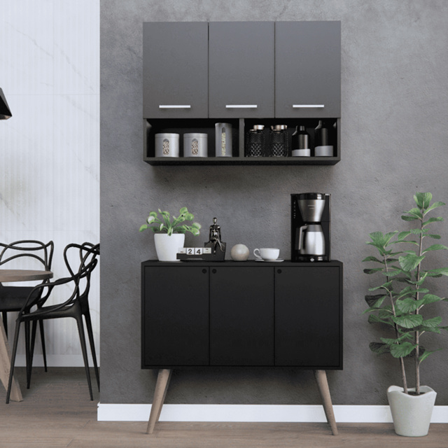 Kit 2 Peças - Armário Aéreo 3 Portas com Nicho + Balcão 3 Portas com Pés Retrô em Pinus Este kit prático e elegante é composto por um armário aéreo com nicho e um balcão com pés retrô em pinus, oferecendo organização e estilo ao seu ambiente. -Armário Aéreo 3 Portas Medidas: 90 cm (C) x 62 cm (A) x 27 cm (P) 3 portas e nicho central para armazenamento funcional. -Balcão com Pés Retrô 3 Portas Medidas: 90 cm (C) x 77 cm (A) x 33 cm (P) 3 portas, prateleira interna e pés em pinus, trazendo um charme retrô ao ambiente. Características: Design moderno e funcional Acabamento de alta qualidade Ideal para cozinhas, escritórios e outros espaços Adicione sofisticação e organização ao seu lar com esse kit de móveis práticos e estilosos!
