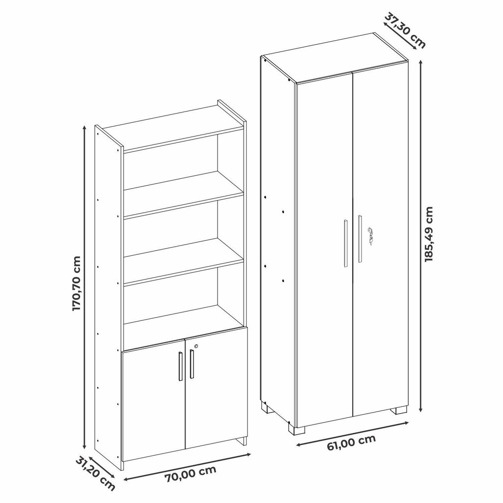 Kit Armários para Escritório Semi Aberto 2 Portas e Armário Alto com Chave Preto Tx
