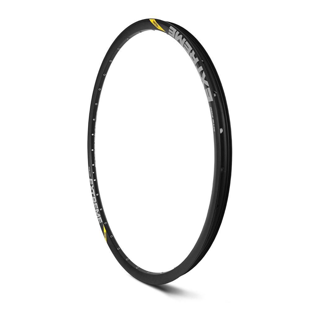 É um dos aros mais utilizados pelos praticantes do MTB. O aro Extreme possui ótimo resistência para os praticantes do Cross-country. Possui ilhós inoxidável que proporciona melhor acabamento a maior resistência. Este novo modelo "Extreme Pro" é mais largo para se adaptar melhor aos pneus mais largos suportando até 2.4", outra vantagem deste aro mais largo é que os pneus se adaptam melhor e aderem melhor aos terrenos. Especificações Modalidade MTB Cross-Country Aros Parede Dupla Medidas 29" - 622x22.5mm ERD 29" ( 599 ) Furação 36 Material Alumínio 6061 Pneu 1.5" até 2.4" Válvula Fina ( Presta ) Peso 29" 540gr Cores Preto Par de Aros O peso informado pode ter variação de 5% para mais ou para menos devido ao processo de extrusão.