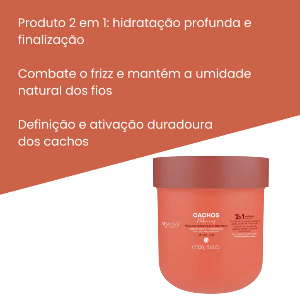 Kit Arvensis Cachos Naturais - Ativador 300ml + Máscara 2 x 1 500g para Ondulados e Cacheados