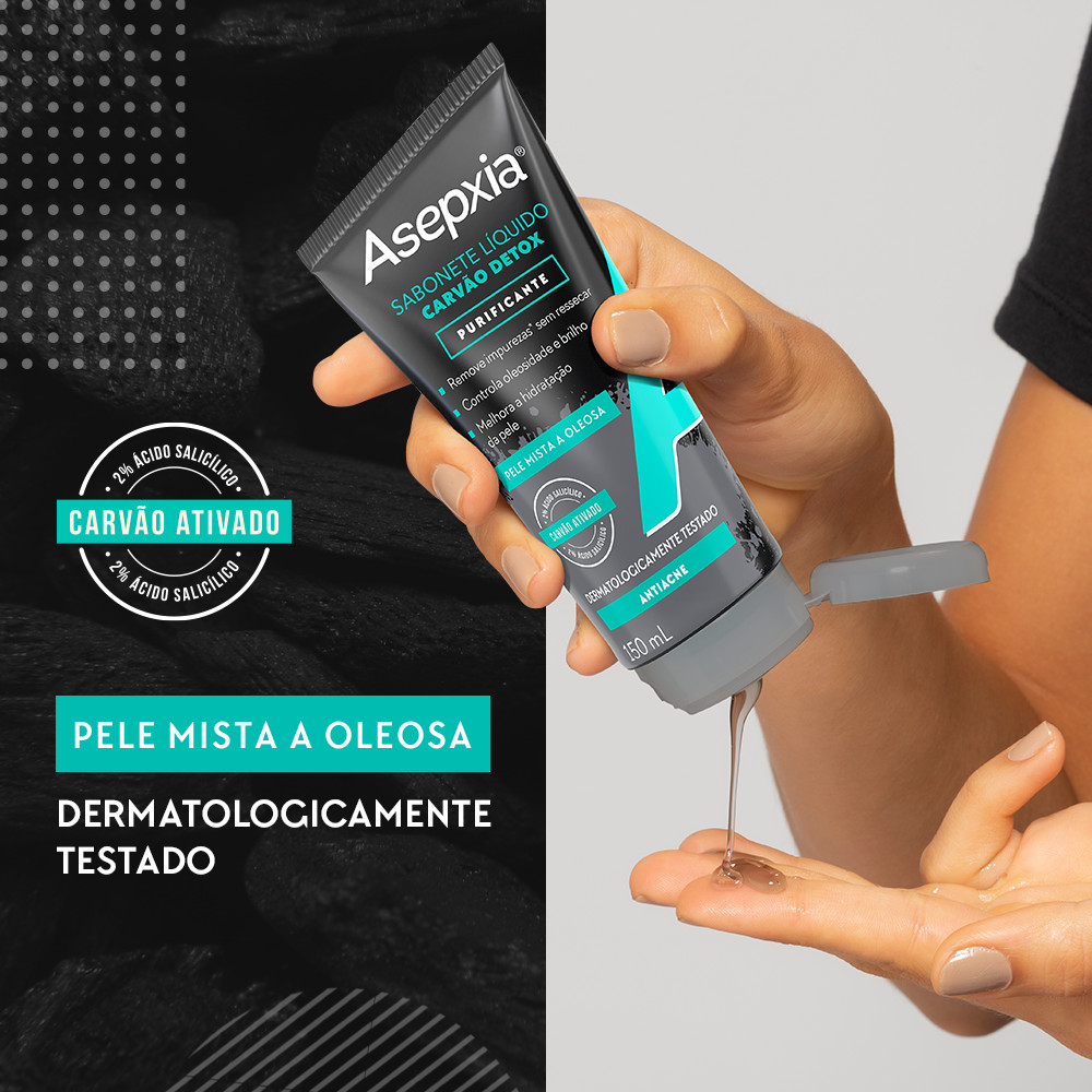 O peso líquido do conteúdo é de 80g. O Asepxia Sabonete Facial Detox purifica a pele, remove impurezas sem ressecá-la, reduz a oleosidade e brilho da pele e combate e ajuda a prevenir cravos e espinhas. Feito para pele mista ou oleosa, o Asepxia Sabonete Detox limpa profundamente sua pele, reduz e controla a oleosidade, e desobstrui os poros. Nossa tecnologia foi criada para controlar a oleosidade, desobstruir os poros e combater os cravos, deixando a pele mais lisa e sequinha. O Asepxia Sabonete Esfoliante é perfeito para uma limpeza de pele profunda. Combate os cravos com uma simples esfoliação do rosto. Modo de Uso: Aplique com uma leve massagem no rosto úmido, de manhã e à noite, insistindo nas áreas mais oleosas ou com cravos e espinhas. Enxágue logo em seguida.