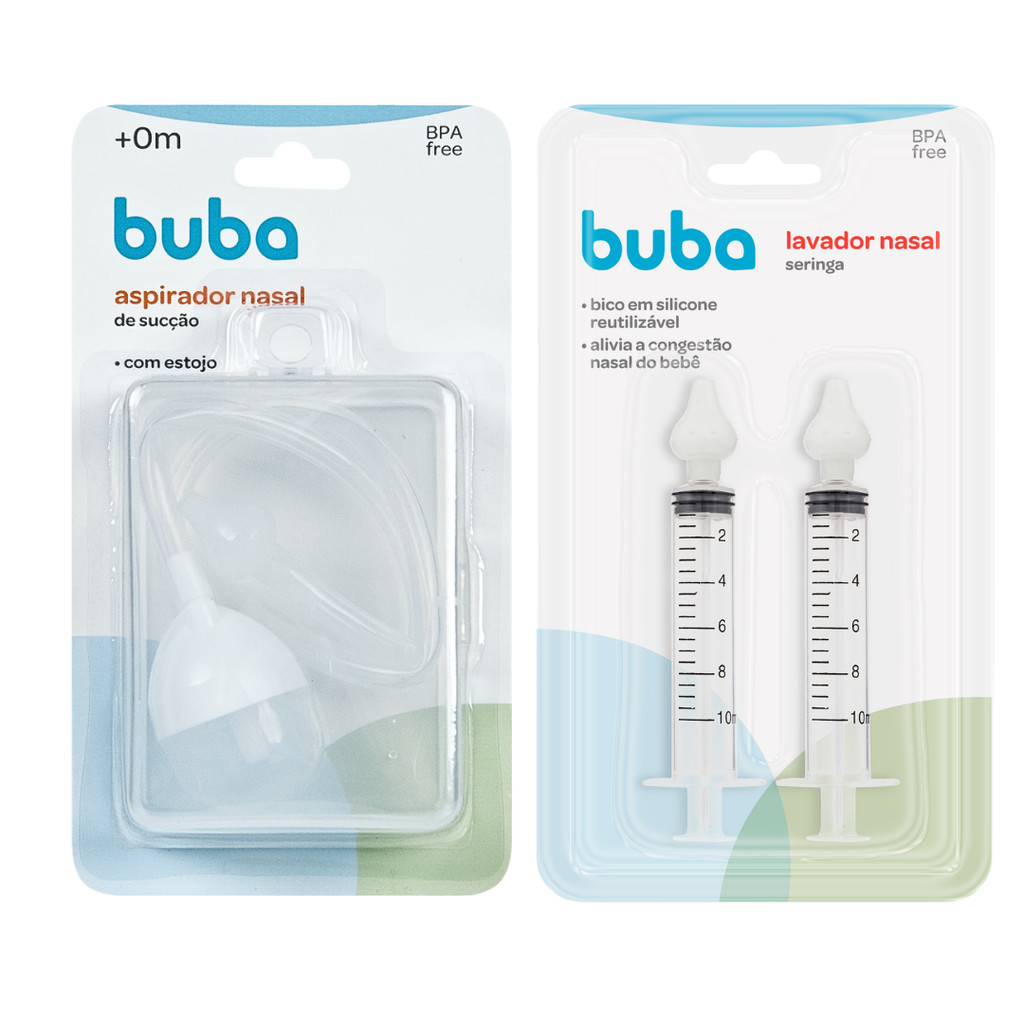 KIT ASPIRADOR NASAL SILICONE PARA BEBÊ MAIS KIT 2 SERINGAS PARA LAVAGEM NASAL PONTA DE SILICONE BUBA