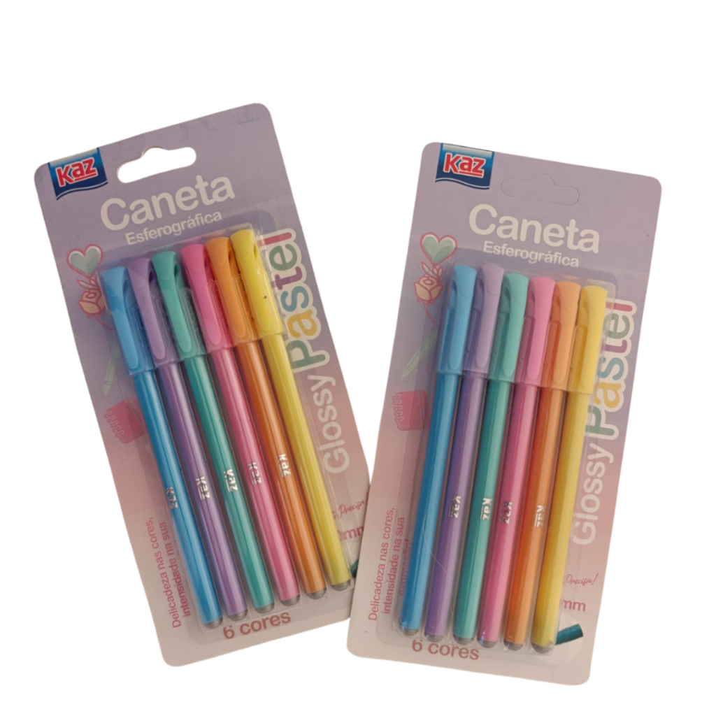 Kit Atacado Pacotes Canetas em Tons Pastel Esferográficas Escrita Suave 1.0mm Glossy KAZ 6 UN Cada