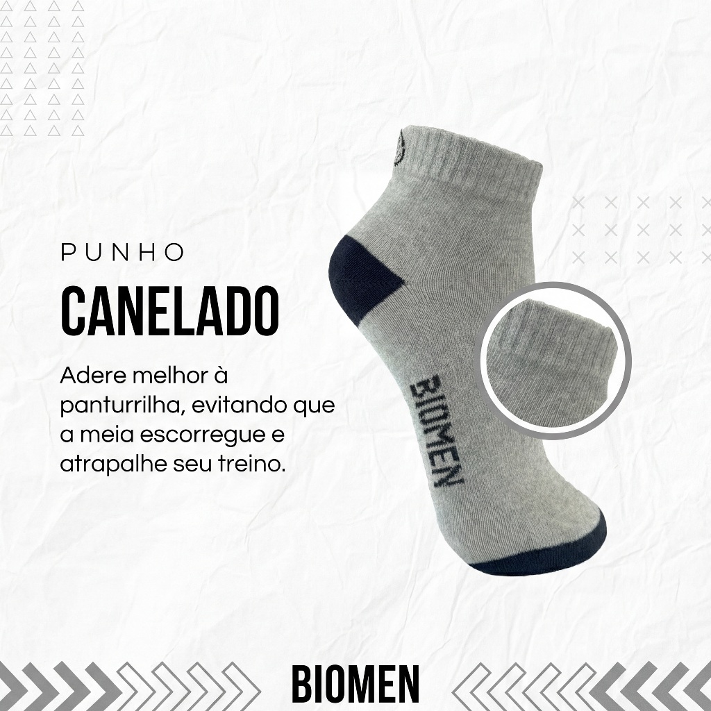 Kit de Meia Masculina Cano Curto Biomen ATENÇÃO: Não enviamos meias brancas! Detalhes do Produto: Veste do Tamanho 37 ao 44. Cores: Preto, Cinza, Cinza Escuro e Azul Marinho. Composição do Material: 73,32% Poliéster, 17,26% Algodão, 6,81% Viscose, 1,09% Elastano, 1,30% Elastodieno, 0,22% Polipropileno. Atenção: A embalagem pode estar diferente conforme demanda. IMPORTANTE: Devido à alta demanda, não realizamos alterações nas cores ou quantidades após a compra. tags: meias, meia cano alto, meia masculina, kit de meias, meias masculinas, meia masculina, meia masculino, meia dia-a-dia, meia, meia de algodão