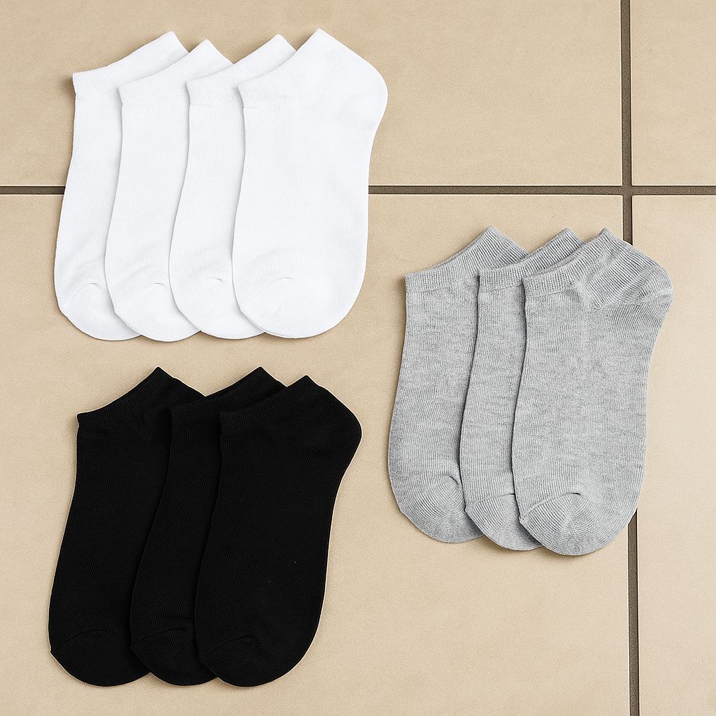 Kit 24 Meias Invisíveis Unissex Cano Baixo – Preto, Branco e Cinza – Confortáveis e Discretas Garanta conforto e praticidade no dia a dia com nosso Kit com 24 Meias Invisíveis Unissex, nas cores preto, branco e cinza. Com design discreto e cano baixo, são ideais para quem prefere um visual limpo, sem deixar a meia aparente – perfeitas para usar com tênis e sapatos casuais. Produzidas com material leve, macio e respirável, essas meias oferecem um encaixe anatômico, que não escorrega e não aperta. Um kit completo para manter seus pés secos, protegidos e com sensação de frescor ao longo do dia! Destaques do produto: Conforto extremo: toque suave e costura que não incomoda Cano invisível: ideal para tênis e calçados baixos Respirável: tecido que evita suor excessivo e mau cheiro Tamanho único unissex: veste do 38 ao 45 com ótimo ajuste Cores neutras e versáteis: preto, branco e cinza para combinar com tudo Kit econômico: 24 pares para você ter sempre uma meia limpa à mão! Essas meias são a escolha certa para quem quer unir conforto, discrição e ótimo custo-benefício. Perfeitas para o dia a dia, academia, trabalho ou lazer. Mais praticidade, mais estilo e menos preocupação!
