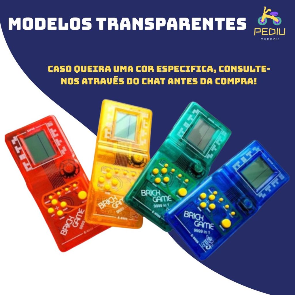 *** NÃO ACOMPANHA PILHA *** KIT ATACADO DE SUPER MINI GAME QUE TAL RELEMBRAR OS VELHOS TEMPOS? A MODA VOLTOU COM TUDO E VAI SER UMA DIVERSÃO PARA TODA FAMÍLIA. COM CLÁSSICOS COMO TETRIS, JOGO DA COBRINHA, ENTRE OUTROS!!!! SÃO 9999 JOGOS EM APENAS 1 BRINQUEDO. Várias funções, como: - Opção pra pausar o jogo - Opção para deixar o som no mudo ou vice-versa - Opção de Reset - Possuindo controles macios e sensíveis ao toque, ele traz o melhor da tecnologia para que não haja interrupções em suas jogatinas. INSTRUÇÕES ADICIONAIS: - Aperte a tecla ON/OFF para ligar e desligar. - Use as teclas Level, mode, speed, para escolher entre níveis, modos e velocidades do jogo. - Pressione Start para iniciar o jogo. - Antes de iniciar o jogo, as pontuações são mostradas. - Sound: definir o modo de som. - Mode: alterar o modo de jogo. - Level: muda o nível do jogo. - Speed: velocidade da queda Em caso de dúvidas, por favor, entre em contato conosco através do chat. Em caso de problemas no fornecimento, por favor, entre em contato através do link do seu pedido. Somos a PEDIU CHEGOU, e postamos seu pedido em até 24 horas. Contem com a gente =) *** NÃO ACOMPANHA PILHA ***