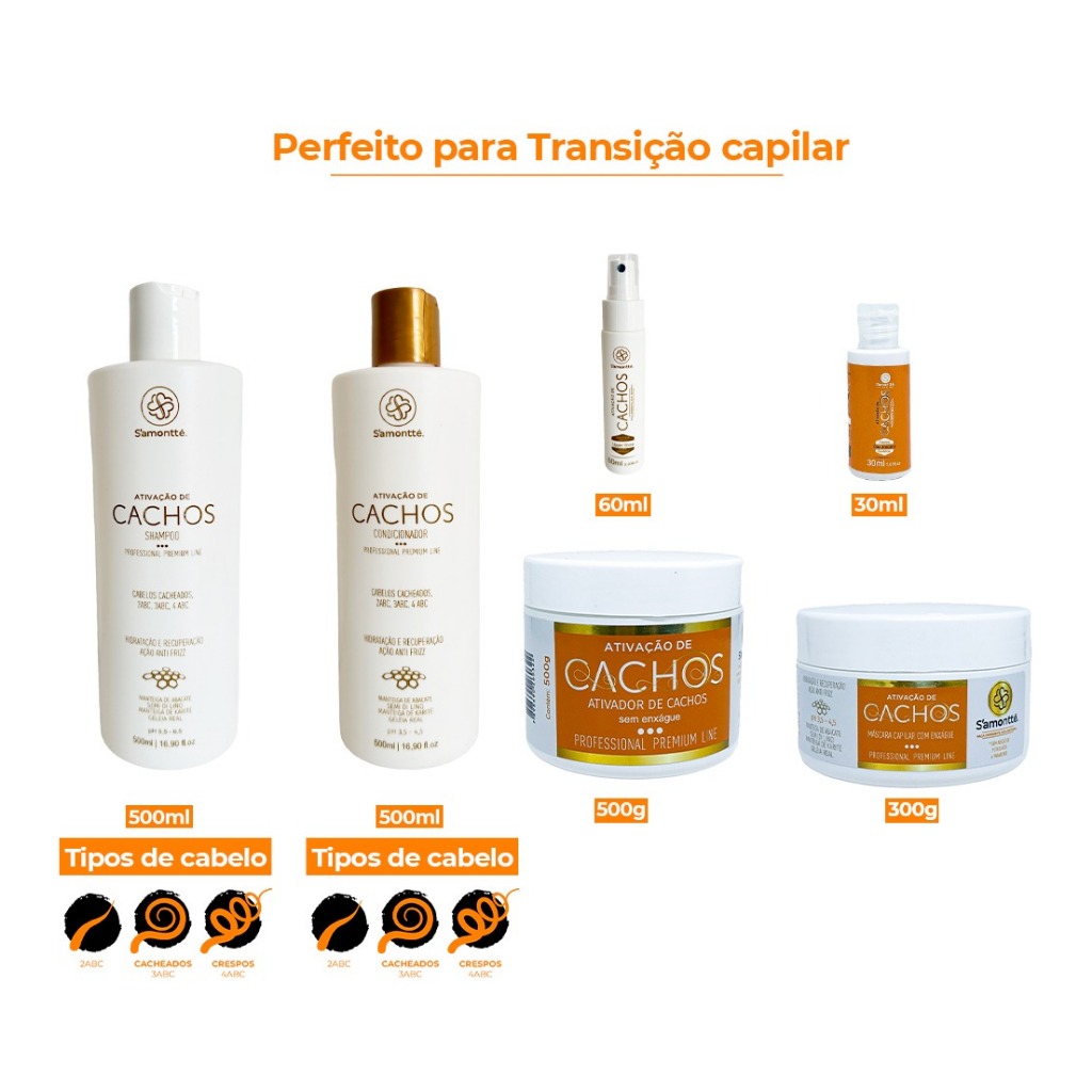 Kit Ativador de Cachos Com 6 Produtos Hidratação Brilho Anti-frizz Samontte Pronta Entrega