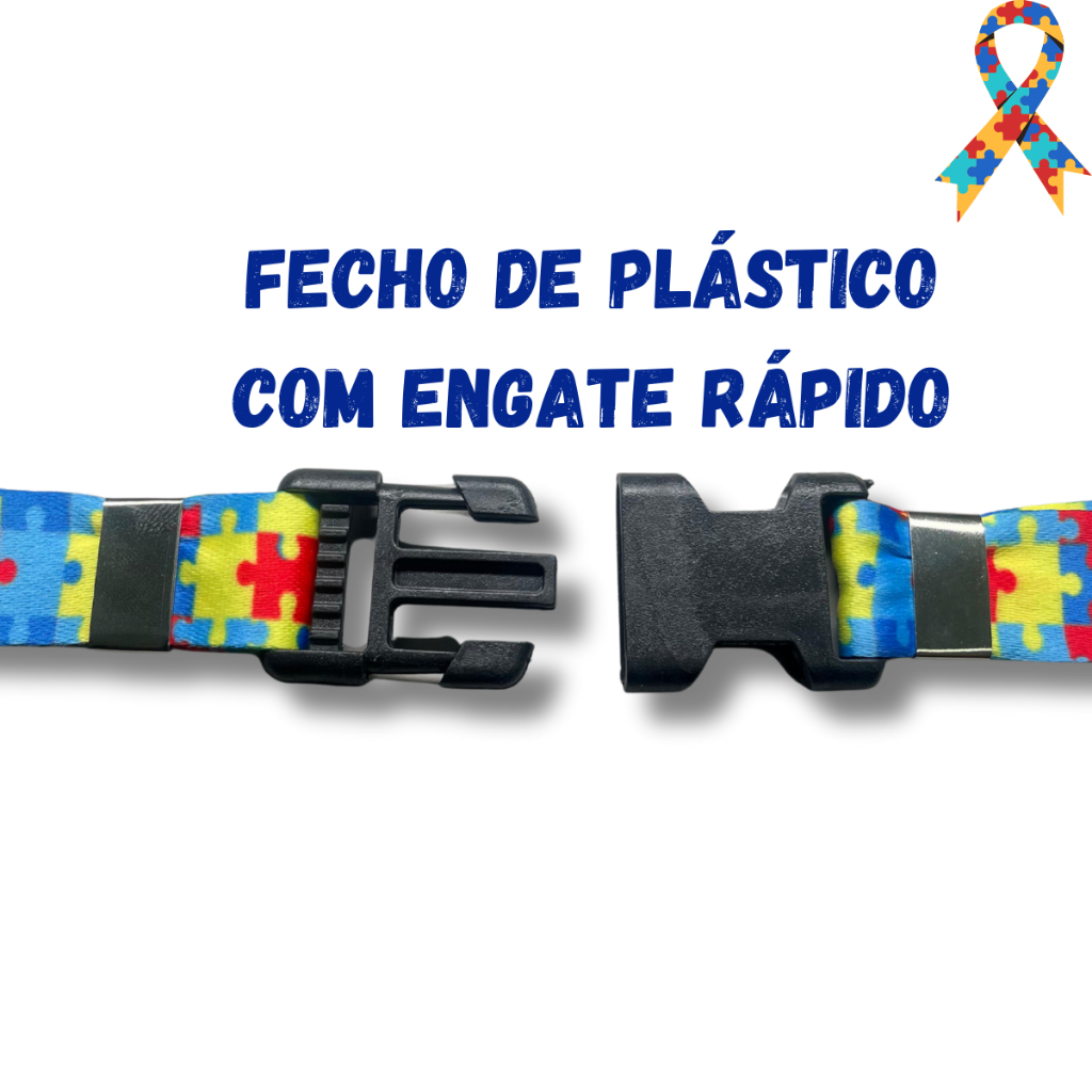 Kit Autismo 4 Peças – Cordão Crachá Pulseira Chaveiro Inclusão Identificação Autista Quebra-cabeça