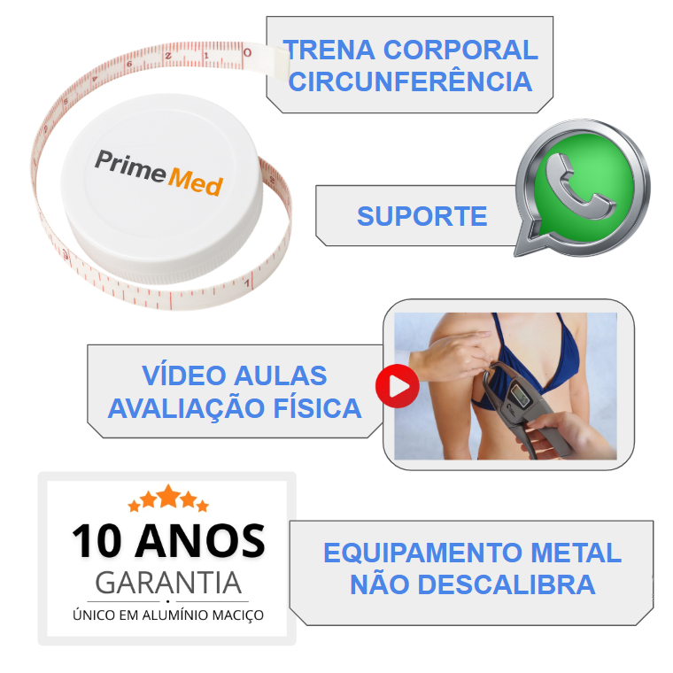 Adipômetro Profissional Prime Med Neo. 10 Anos de Garantia Total. Anvisa: 82454320001 LISTA COMPLETA DO KIT: - Adipômetro Profissional Prime Med Neo. (GARANTIA 10 ANOS) - Software Avaliação Física - Fita métrica 1,5m – Prime Med - Caixa protetora e Luva para transporte e proteção. - Vídeo Aulas Avaliação Física. - Balança Digital Capacidade 180KG ATENÇÃO: SEU PRODUTO SERÁ ENVIADO EM UMA EMBALAGEM ESPECIAL COM EXTREMA PROTEÇÃO. PRODUTO A PRONTA ENTREGA - ENVIO IMEDIATO 1 - Precisão Superior + Limpeza Rápida e Segura. Com hastes metálicas e simétricas, com montagem exclusiva totalmente sem parafusos, o Adipômetro Prime Med Neo oferece precisão superior e nunca descalibra. 2 - Livre de calibração – Sem parafusos e sem molas comuns, é o único que nunca se desregula e mantém sua firmeza e precisão por muitos anos. O adipômetro é um instrumento fundamental para quem busca uma avaliação precisa da composição corporal. Ele é utilizado por profissionais de avaliação física e nutrição, sendo uma ferramenta importante para mensurar a quantidade de gordura presente no corpo de seus pacientes. Se você é um profissional que busca oferecer um serviço completo e de qualidade para seus clientes, o adipômetro é um equipamento indispensável em sua clínica. Com ele, é possível acompanhar a evolução do paciente ao longo do tempo, ajustando as estratégias de acordo com os resultados obtidos. Além disso, o adipômetro é um recurso valioso para conquistar novos clientes. Muitas pessoas têm interesse em avaliar sua composição corporal, seja para alcançar uma meta de perda de peso, para melhorar o desempenho esportivo ou simplesmente para monitorar sua saúde. Ao oferecer esse serviço, você se destaca no mercado e pode atrair um público cada vez maior. Com o adipômetro, é possível realizar avaliações precisas e personalizadas, levando em conta as características individuais de cada paciente. Com base nos resultados obtidos, é possível traçar estratégias mais eficazes para o alcance dos objetivos desejados. Não perca a oportunidade de agregar valor aos seus serviços e oferecer aos seus clientes uma avaliação completa e de qualidade. Invista em um adipômetro e faça a diferença na vida das pessoas, ajudando-as a alcançar seus objetivos e a ter uma vida mais saudável.